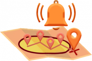 El dispositivo detecta automáticamente la zona habitual de trabajo de la máquina y asigna un perímetro de seguridad. Si la máquina se sitúa fuera del perímetro de seguridad el dispositivo envía una alarma por voz, email y/o SMS.